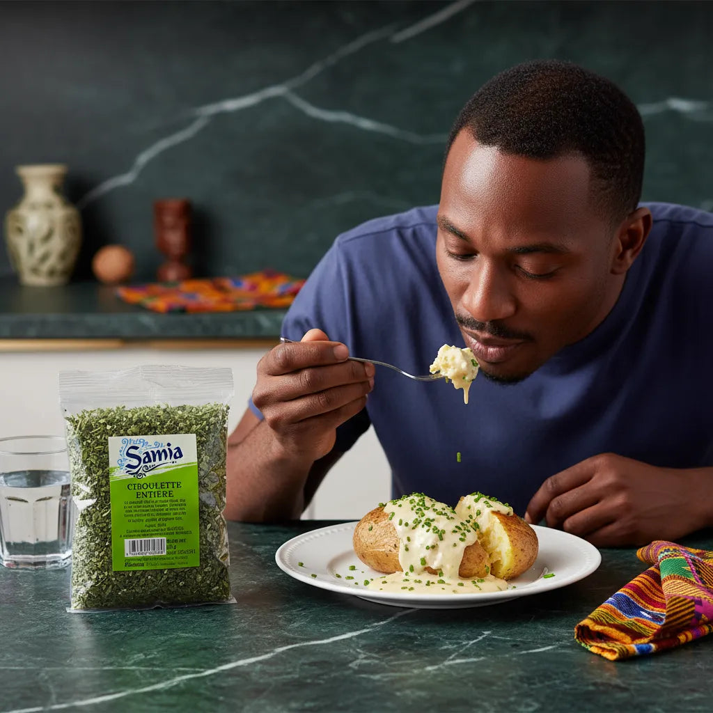 Reise der Sinne mit dem getrockneten Schnittlauch SAMIA: Entdecken Sie die authentischen Aromen neu mit dem getrockneten Schnittlauch Samia. Ursprünglich aus Rezepten, bei denen jede Zutat zählt, wird dieses aromatische Kraut Ihre Gerichte mit seinem zarten Duft und seinem leicht würzigen Geschmack veredeln und Ihre Geschmacksknospen in üppige Gefilde entführen.