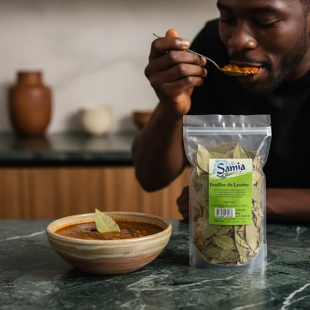 Reise der Sinne : Tauchen Sie ein in die reiche und aromatische Welt der SAMIA Lorbeerblätter. Sorgfältig geerntet, sind diese getrockneten Lorbeerblätter ein kulinarischer Schatz aus einem traditionellen Erbe, der einen duftenden und subtilen Geschmack garantiert, der all Ihre Gerichte veredelt.