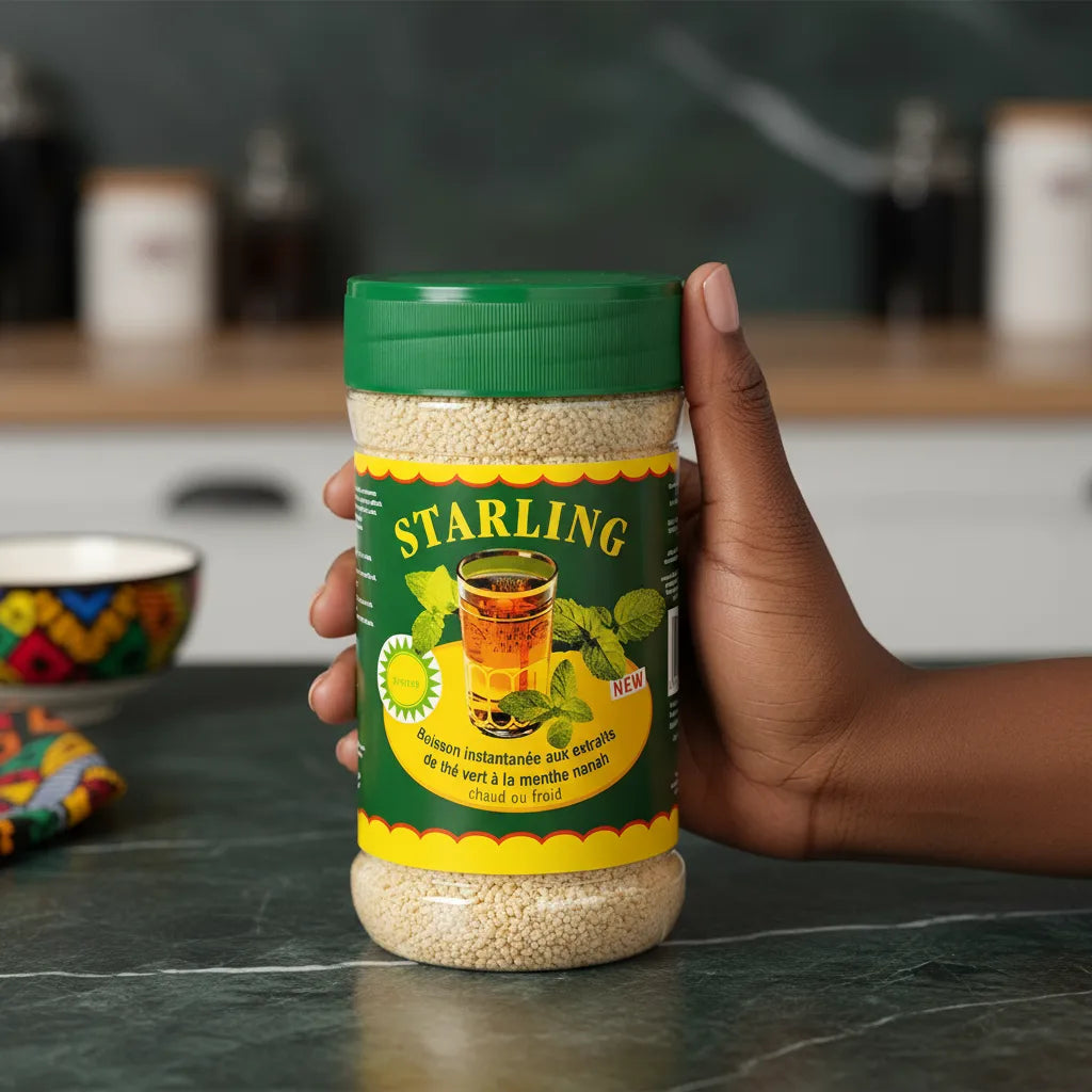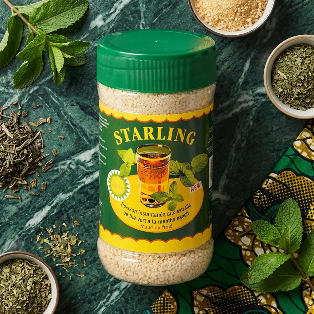Begeben Sie sich auf eine sensorische Reise mit dem Thé Menthe Nanah STARLING, einem Aufguss, der den authentischen Geschmack frisch gepflückter Minze einfängt.