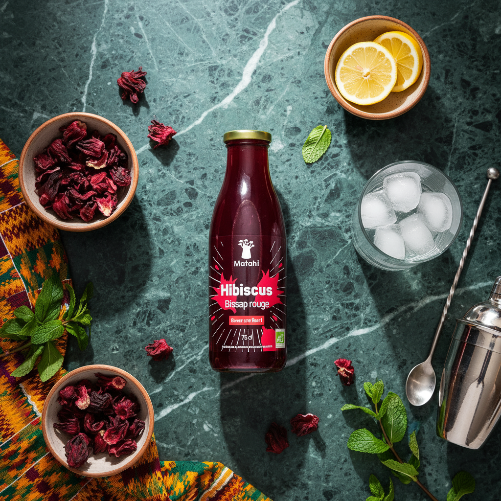 This drink stands out for its superior quality ingredients. By using only organic hibiscus flowers, the Organic Hibiscus Drink MATAHI guarantees an authentic and natural flavor without artifices. Every sip is a promise of freshness and purity.