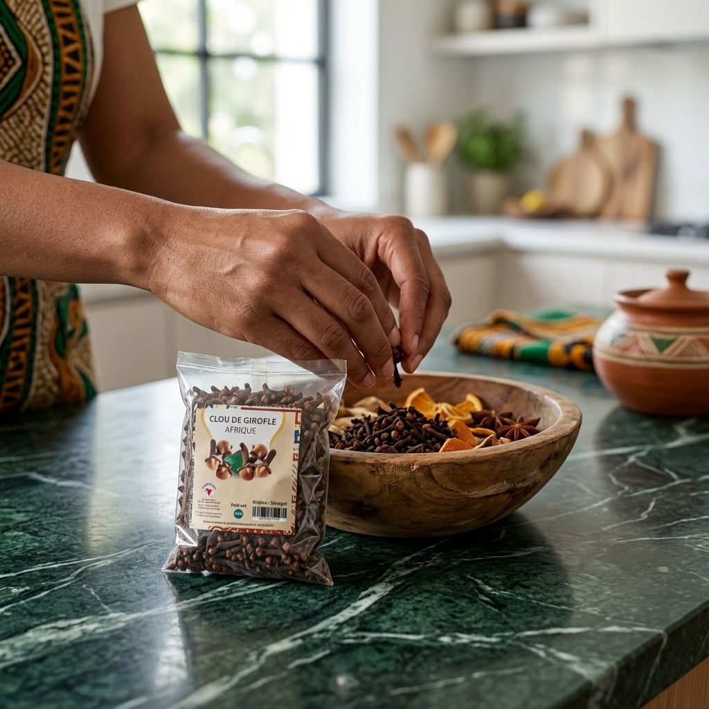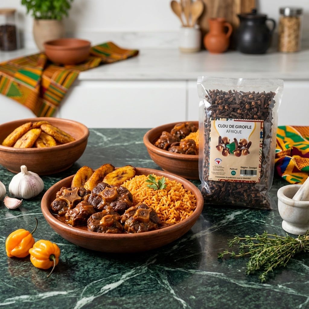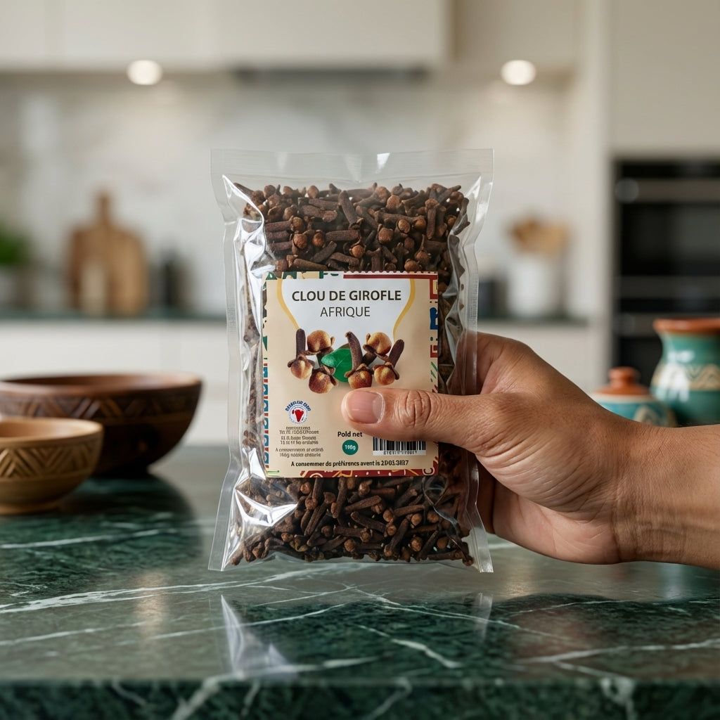 Les clous de girofle AFRIQUE NUMBER ONE sont le fruit d'une sélection rigoureuse, garantissant une pureté et une puissance aromatique exceptionnelles. Récoltés avec soin, ils sont un symbole de l'authenticité et de la richesse de la cuisine africaine.
