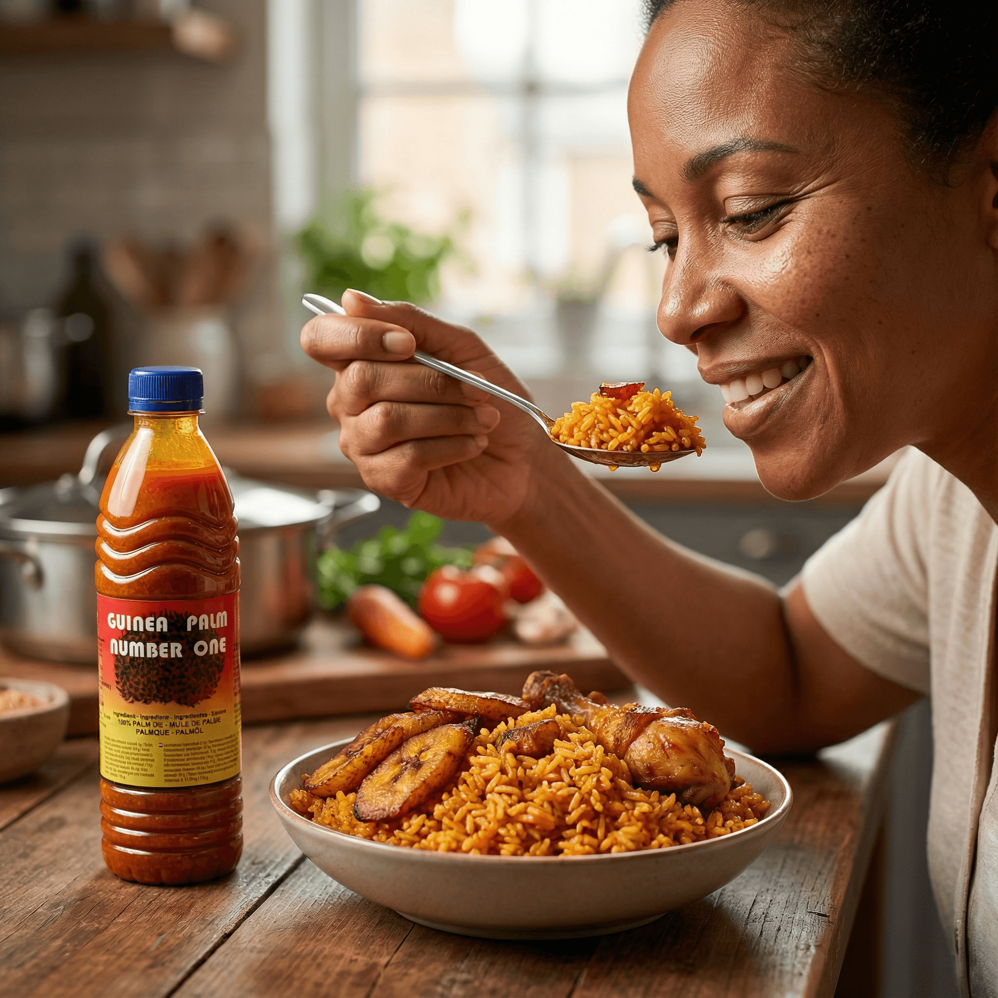 Sélectionnée avec soin, l'huile de palme NUMBER ONE est un pilier de la cuisine africaine et caribéenne. Elle est reconnue pour sa capacité à rehausser les saveurs et à apporter une touche d'authenticité inégalée à vos créations culinaires.