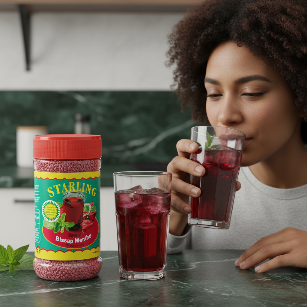 The STARLING mint bissap tea is authentic in its composition, offering the natural flavors of hibiscus and mint without unnecessary additives.