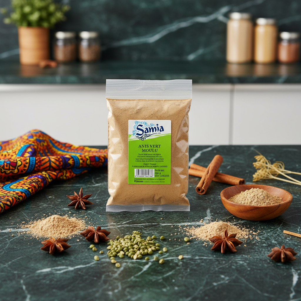 Cada semilla de anís verde es seleccionada con precisión, luego molida delicadamente para ofrecer un polvo homogéneo y aromático. Esta calidad excepcional garantiza una difusión óptima de los aromas, transformando cada receta en una obra culinaria.