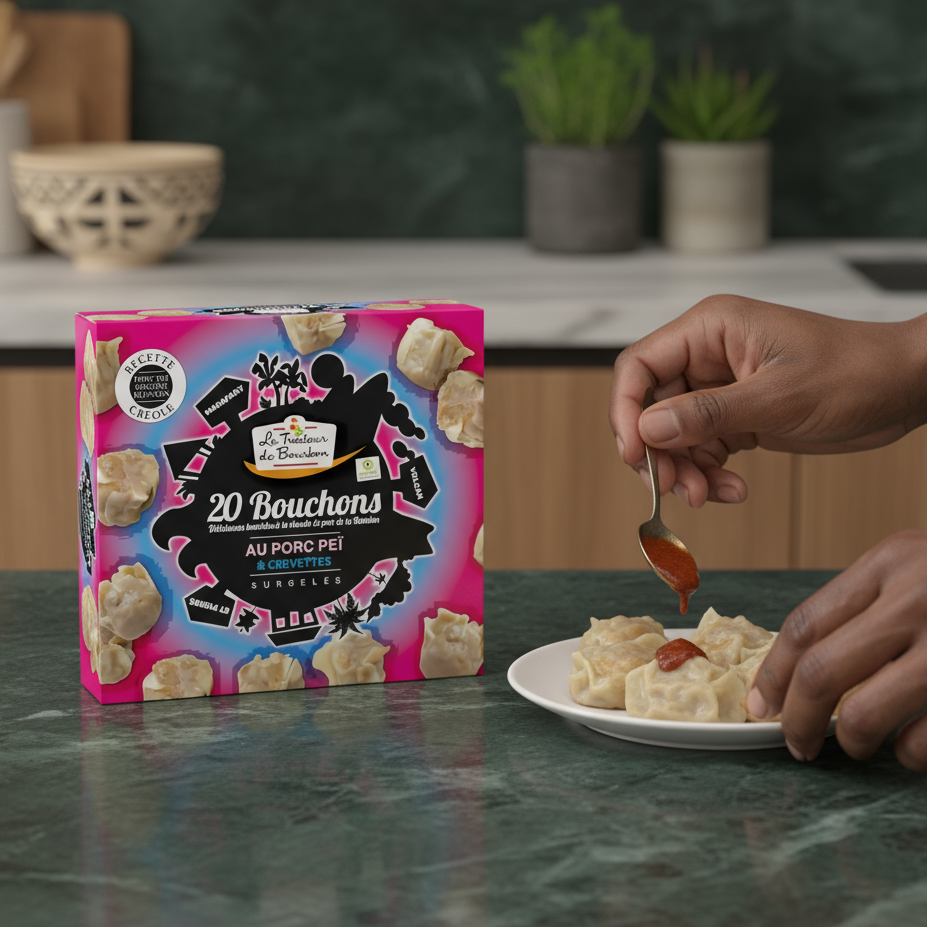 El Bouchon Crevette Porc de la marca Le Traiteur de Bourbon es una verdadera invitación a un viaje culinario a través de sus sabores exquisitos y auténticos. Sucumba a este plato refinado que combina a la perfección la delicadeza de los camarones y la suavidad del cerdo.