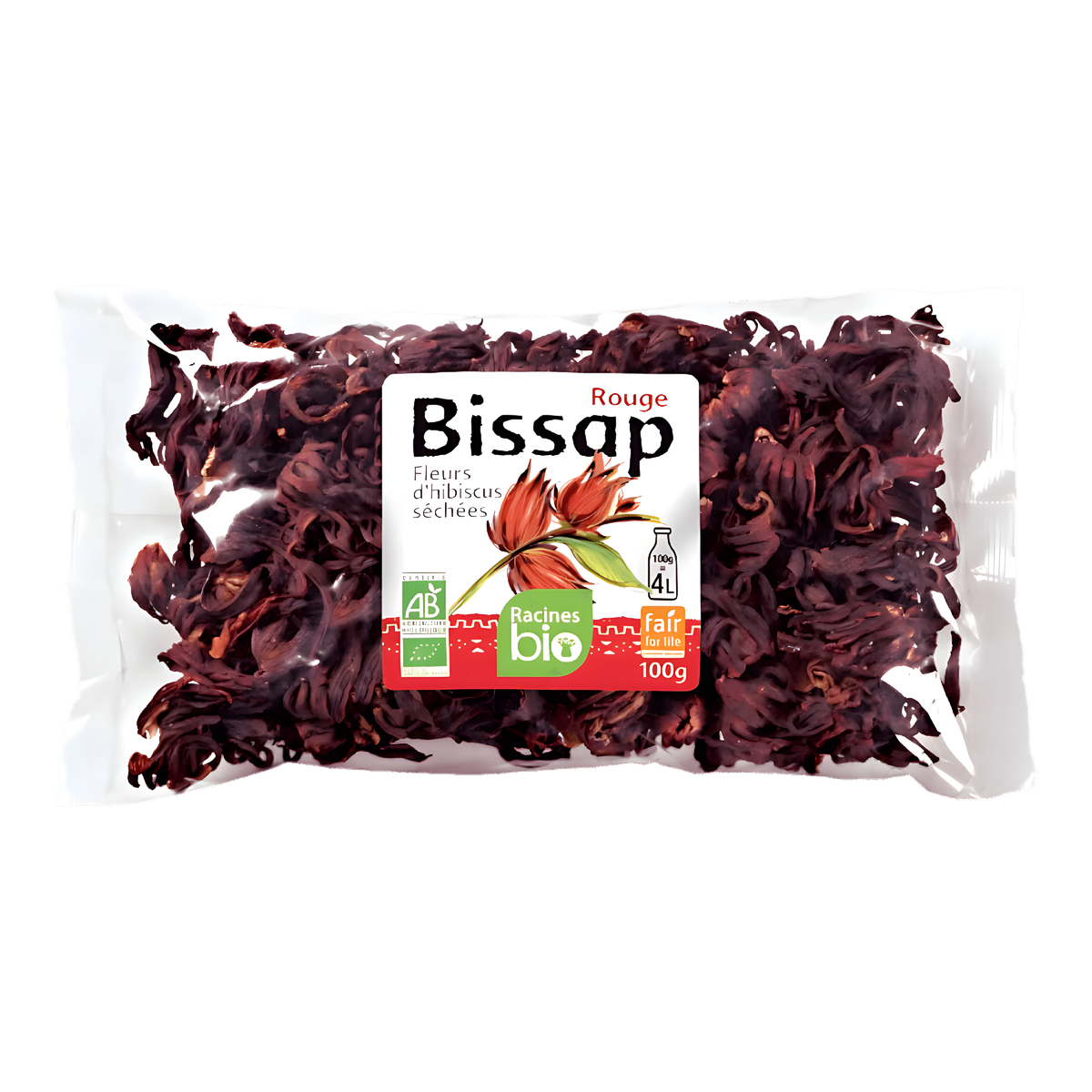 La flor de hibisco roja BIO RACINES es un producto natural y orgánico, apreciado por su sabor delicadamente ácido y su hermoso color rojo intenso. Estas flores secas proceden de cultivos ecológicos certificados, garantizando una calidad óptima y respeto por el medio ambiente. Originarias de las regiones tropicales de África Occidental, estas flores de hibisco se seleccionan y envasan cuidadosamente para preservar sus propiedades aromáticas y su frescura.