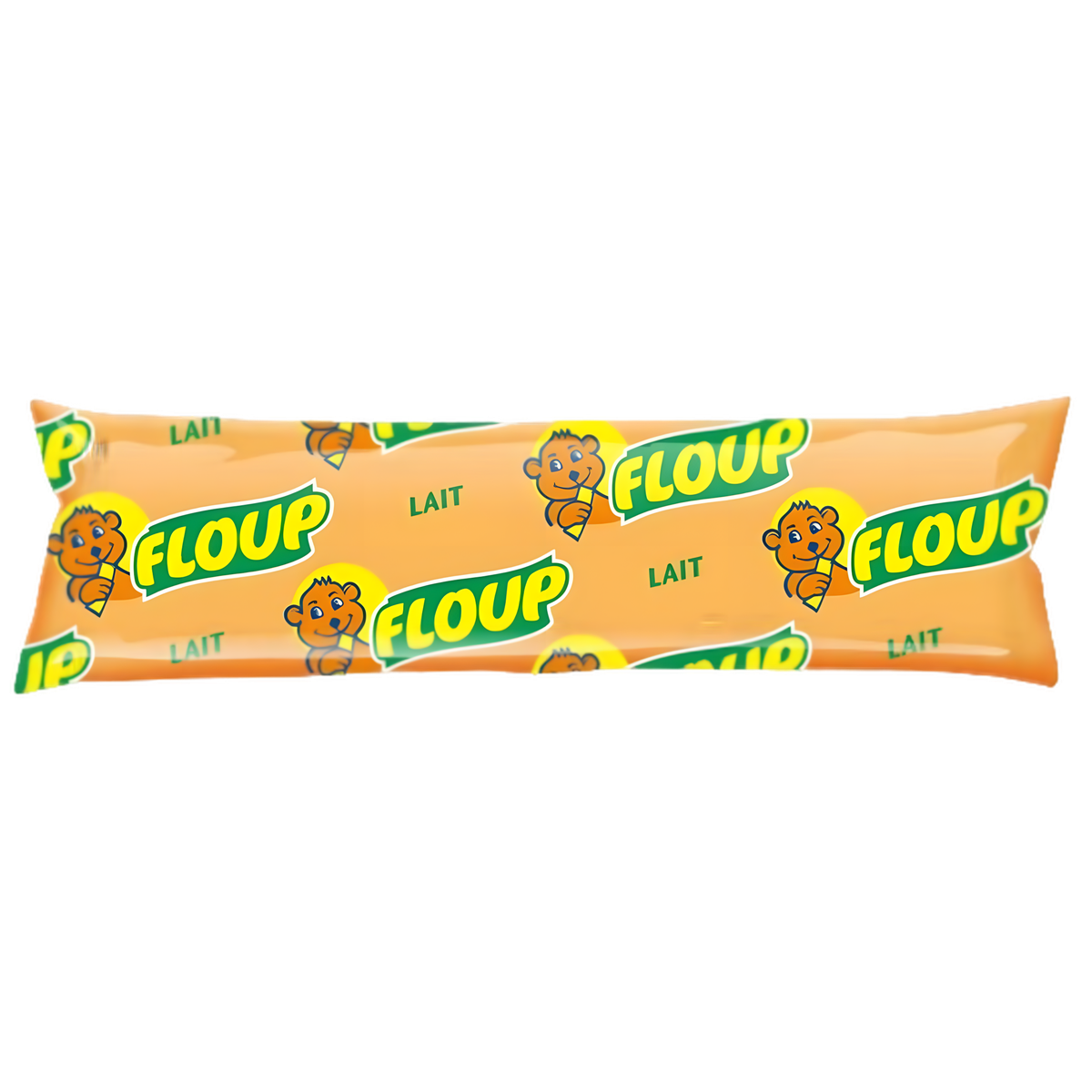 R: Jus/purée (selon la saveur du floup), eau, sucre, et potentiellement des colorants et arômes.