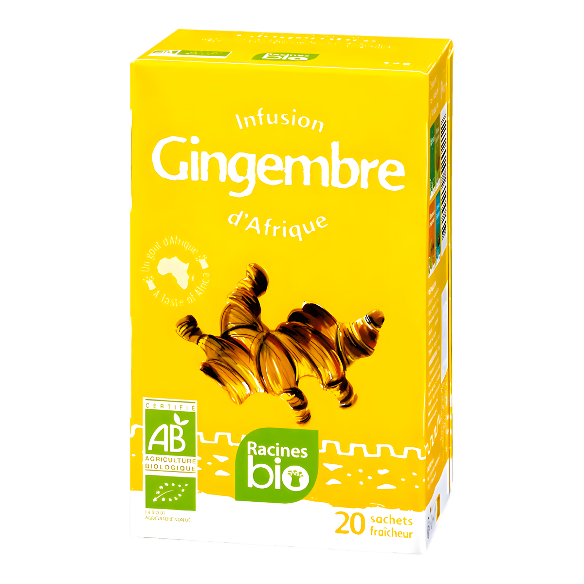 R : Le gingembre provient de l'agriculture biologique. Pour la provenance exact, il faudra se référer au détails de l'emballage