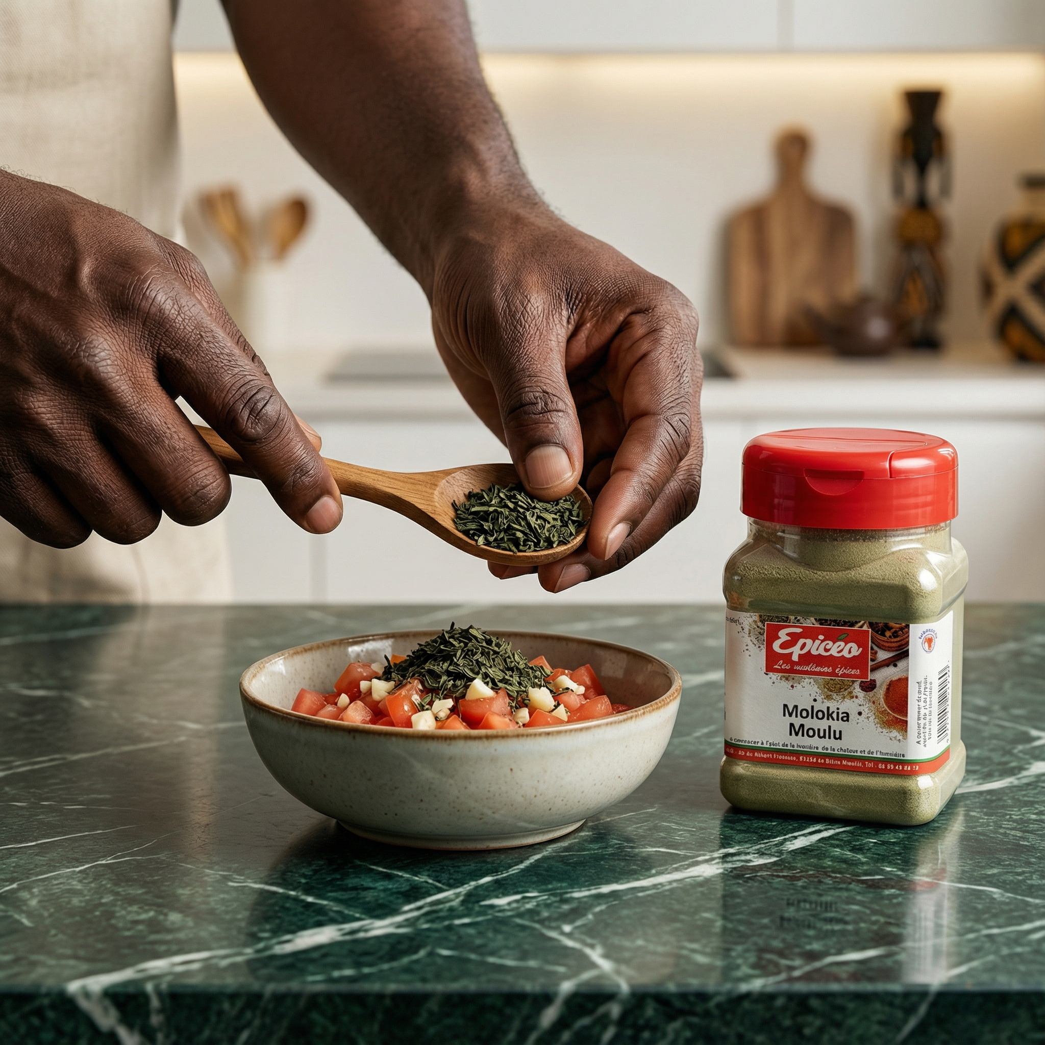 Embarquez pour un voyage sensoriel au cœur des traditions culinaires avec la Molokia Moulue EPICÉO, une poudre verte mystérieuse et essentielle qui transformera vos plats en chefs-d'œuvre exotiques.
