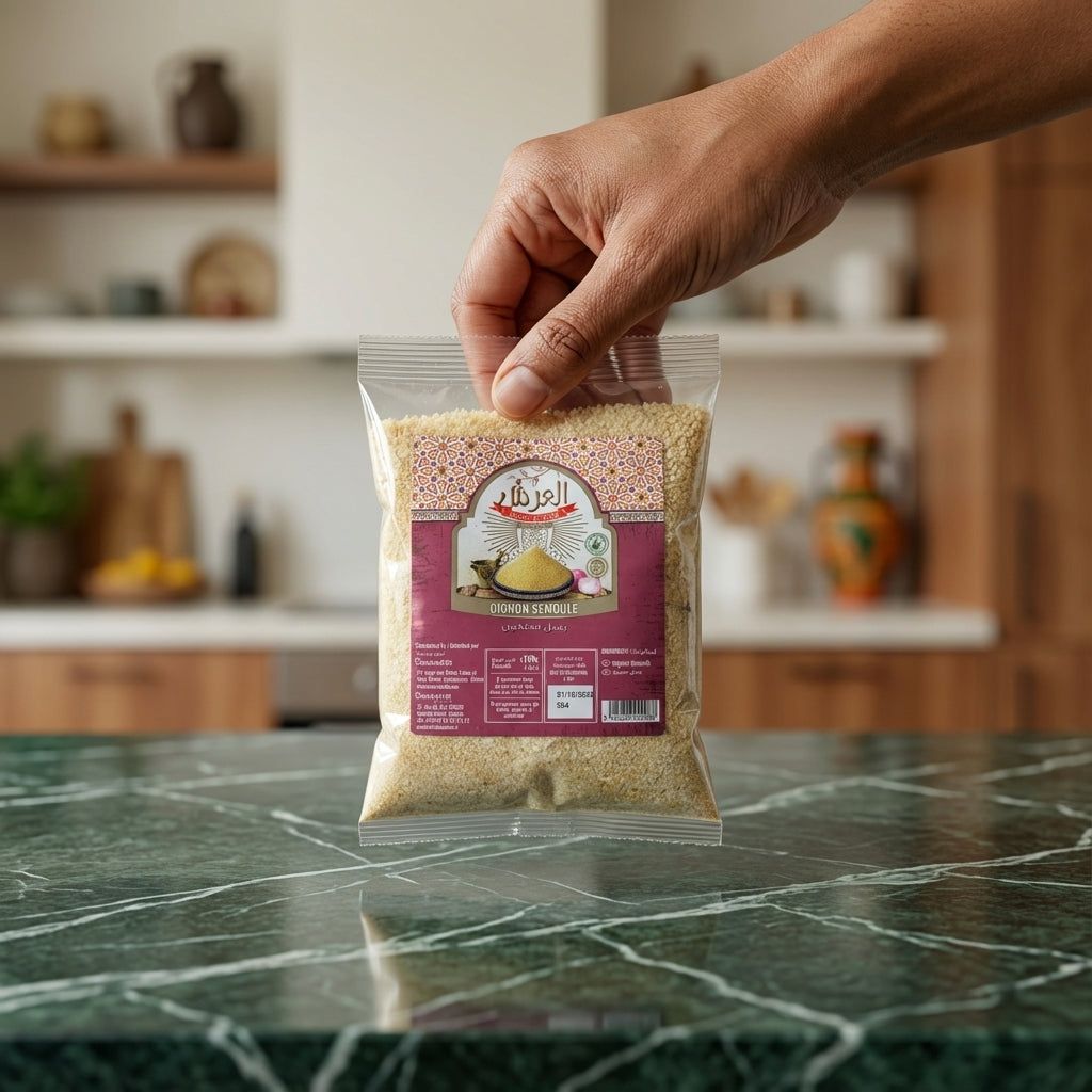 Pour des saveurs optimales, réhydratez légèrement l'oignon semoule avec un peu d'eau chaude avant de l'ajouter à vos sauces, ragoûts ou marinades. Il est aussi parfait pour saupoudrer directement sur vos grillades, légumes rôtis ou dans la pâte à pain pour une touche aromatique unique.