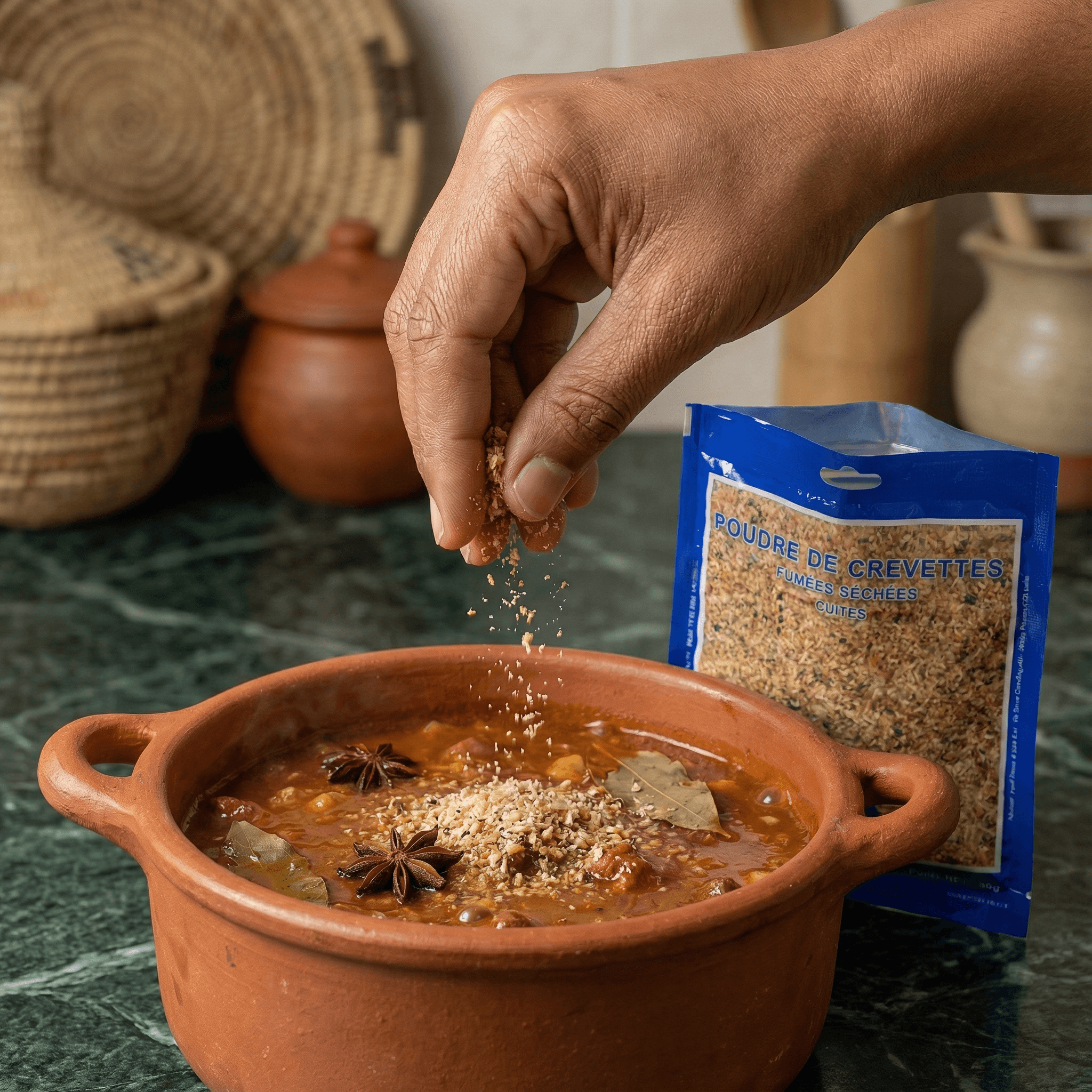 Incorporez une cuillère à café de Poudre de crevette séchée et fumée NUMBER ONE dans vos bases de soupes, ragoûts, sauces ou riz. Elle se dissout facilement et diffuse instantanément ses saveurs, sublimant vos plats de poisson, de viande ou vos légumes. Idéale pour les plats tels que le N'dolè, le Gombo ou le Thiéboudienne.