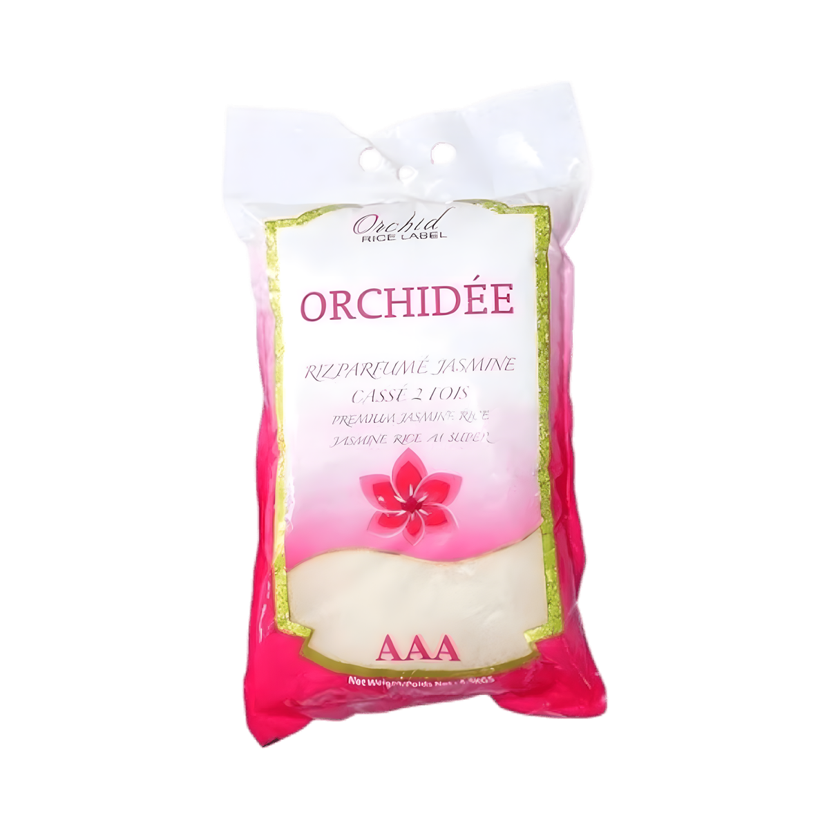 ORCHIDÉE 2-Arroz Jazmín Partido es un arroz fragante de origen asiático, conocido por su delicado aroma y textura ligeramente pegajosa. Este arroz ha sido partido dos veces, lo que le confiere una cocción más rápida conservando su sabor característico. Se distingue por sus granos más cortos que el arroz jazmín tradicional, ofreciendo una textura única apreciada en muchas preparaciones culinarias.