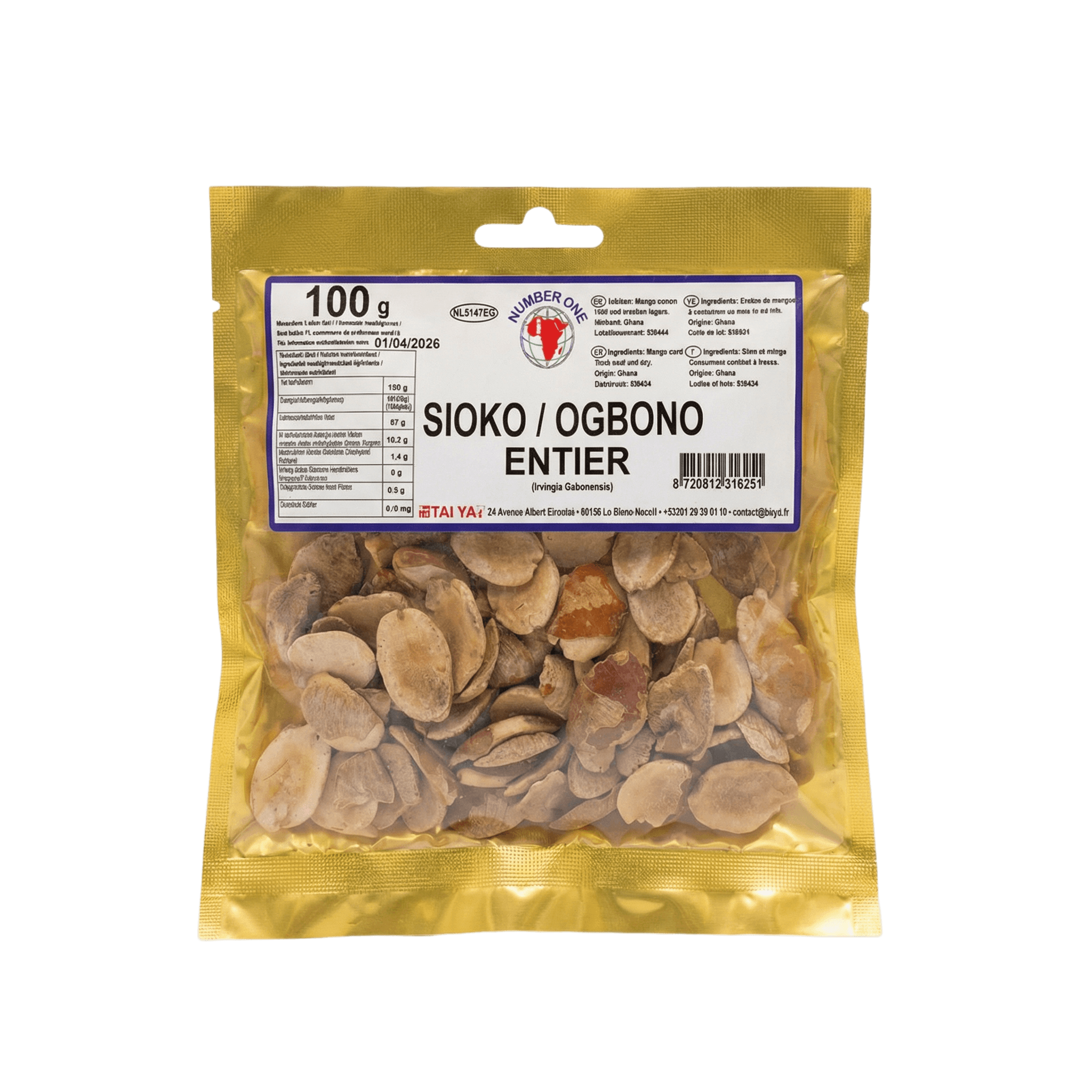 • Le Sioko (Ogbono) est-il un allergène ? L'Ogbono est une graine issue d'un fruit (le mangue sauvage africaine). Bien que botanique différente des fruits à coque courants, il est prudent de considérer un potentiel allergénique similaire et de le mentionner comme tel pour les personnes sensibles aux fruits à coque.