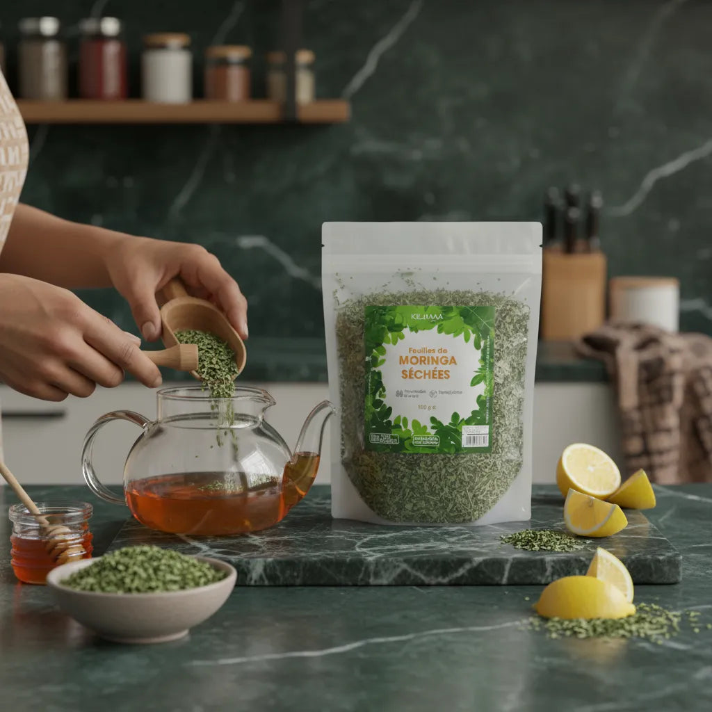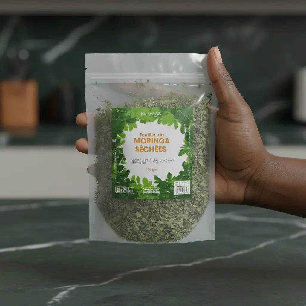 Scoprite la Foglia di Moringa KILIMA, un tesoro nutrizionale proveniente direttamente dall'albero di Moringa oleifera, spesso soprannominato l'albero miracoloso. Queste foglie, accuratamente essiccate, sono una vera miniera d'oro di vitamine e minerali, pronte ad arricchire la vostra quotidianità.