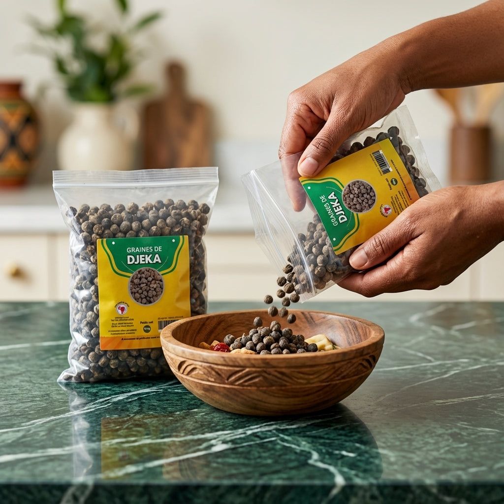 • Comment conserver le Graine de Djeka ? Conservez les graines dans un récipient hermétique, à l'abri de la lumière, de la chaleur et de l'humidité, pour préserver toutes leurs propriétés.