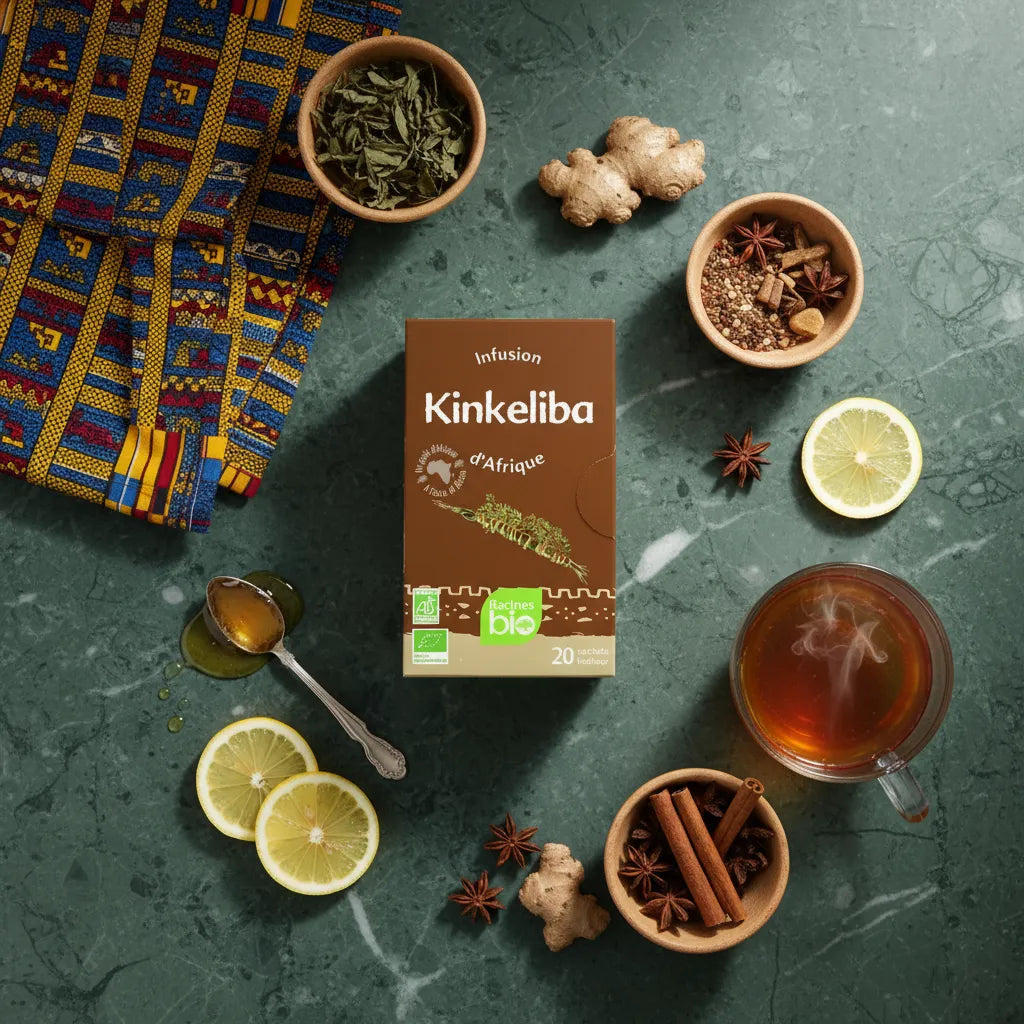 Risvegliate i vostri sensi con l'Infuso d'Africa Kinkeliba BIO RACINES, una bevanda eccezionale proveniente dalle profondità dell'Africa occidentale. Certificato biologico, questo infuso è preparato con cura dalle foglie essiccate del Combretum micranthum, il kinkeliba, un arbusto riconosciuto per le sue virtù ancestrali.