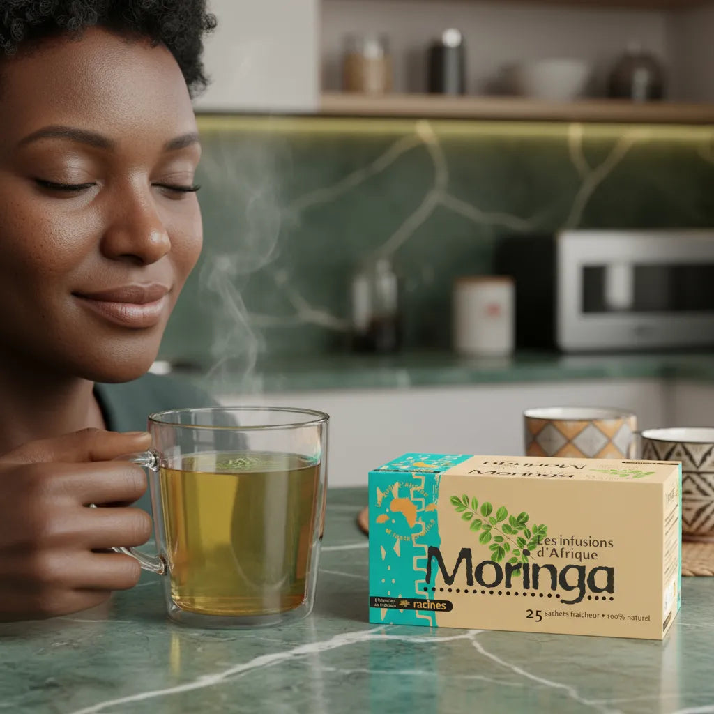 Creato dal celebre marchio RACINES, questo infuso rappresenta l'autenticità e l'eccellenza dell'artigianato africano. Conosciuto per le sue eccezionali proprietà nutritive, è l'alternativa perfetta per accompagnare i vostri momenti di relax offrendo al contempo una spinta alla vostra vitalità naturale. Ogni bustina incarna il sapere tradizionale e un profondo rispetto per i metodi di coltivazione ancestrali.