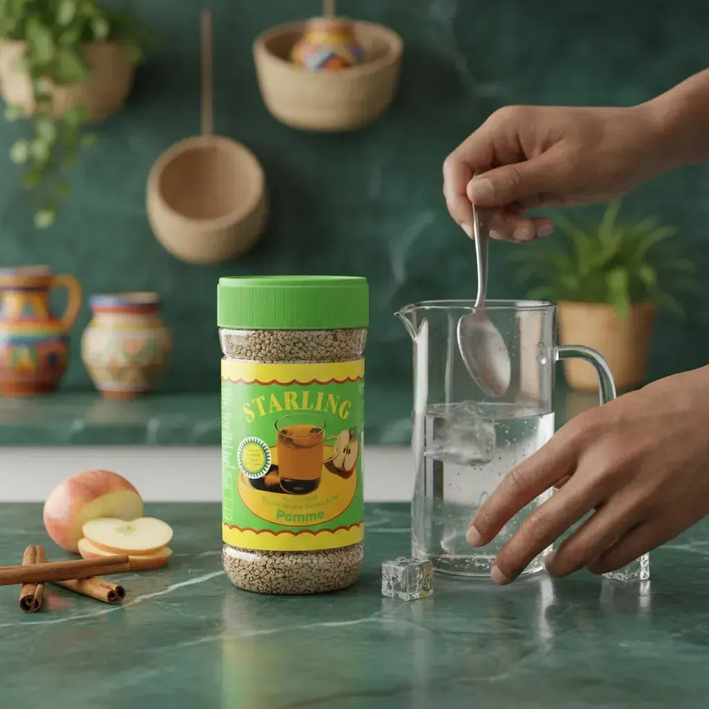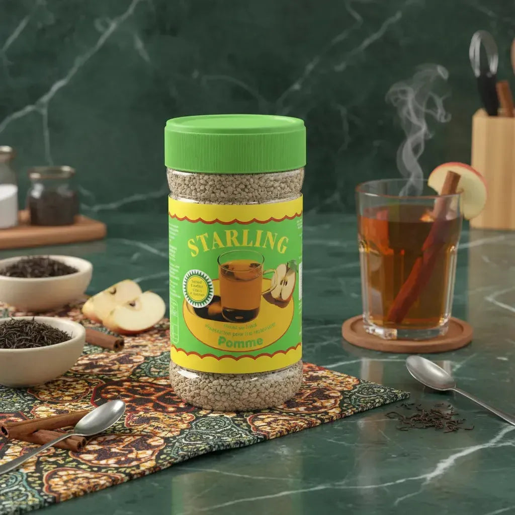 Pour chaque portion de 10 g (environ une cuillère à soupe), le thé à la pomme STARLING fournit environ 40 calories. Il contient également des antioxydants provenant du thé noir, qui peuvent contribuer au bien-être général. Les valeurs nutritionnelles peuvent varier légèrement en fonction des ajouts personnels, tels que le miel ou le citron.