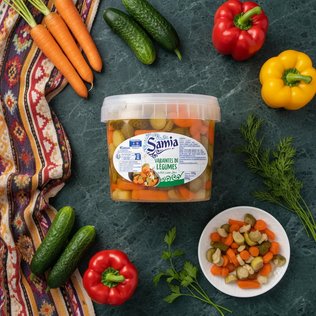 Ogni scatola di Varianti di verdure SAMIA è una garanzia di qualità e autenticità, ideale per arricchire i tuoi piatti quotidiani. Che sia per insaporire i tuoi stufati, esaltare le tue insalate o abbellire i tuoi saltati, queste verdure si integreranno perfettamente nella tua cucina e delizieranno le tue papille gustative.