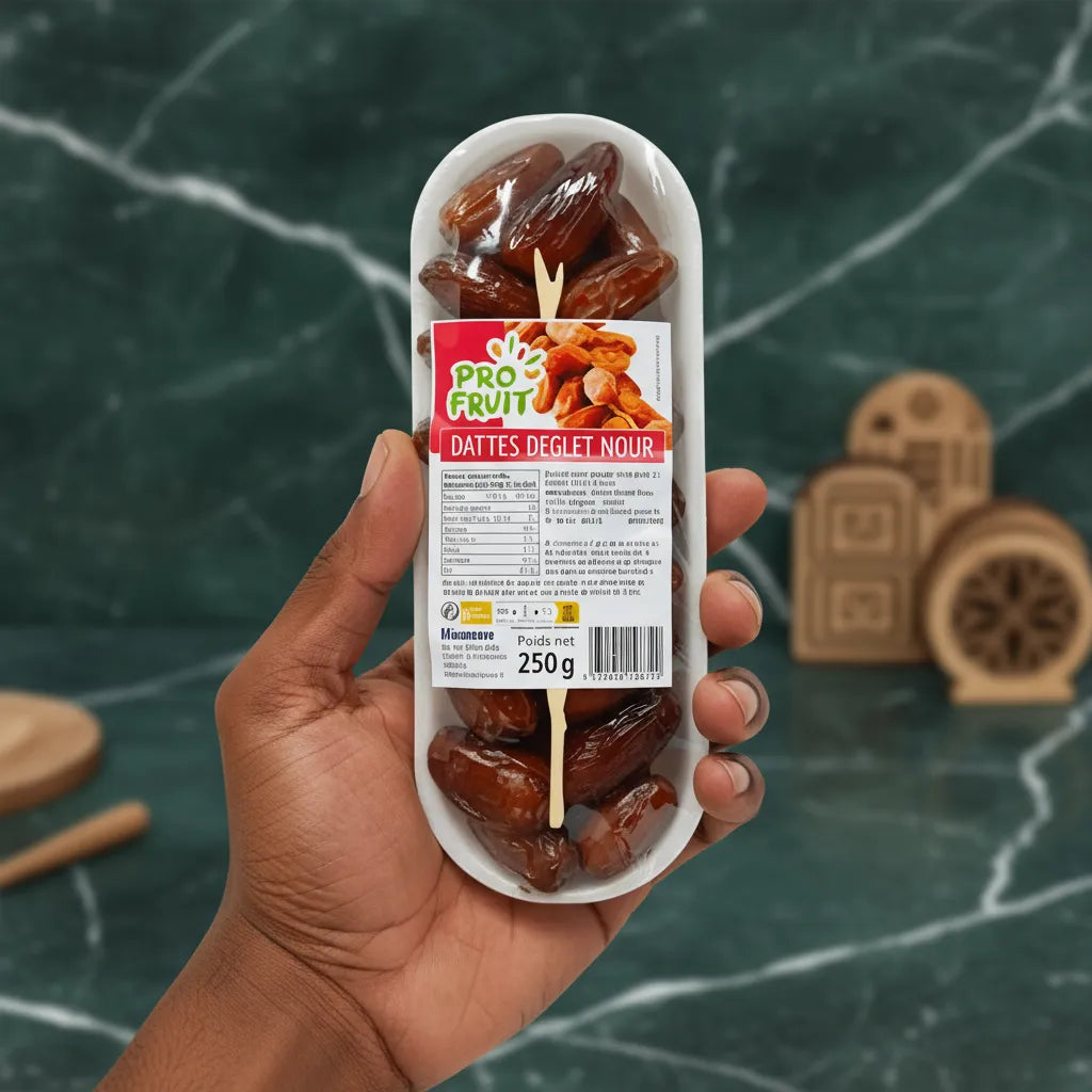 Ontdek een ware reis van de zintuigen met de PROFRUIT dadels. Deze natuurlijke gedroogde dadels betoveren met hun zoete en zachte smaak, perfect voor liefhebbers van fruitige lekkernijen. Afkomstig van een nauwgezet vakmanschap, worden deze vruchten geoogst op rijpheid, waardoor de essentie van een authentieke smaak bij elke hap wordt onthuld.