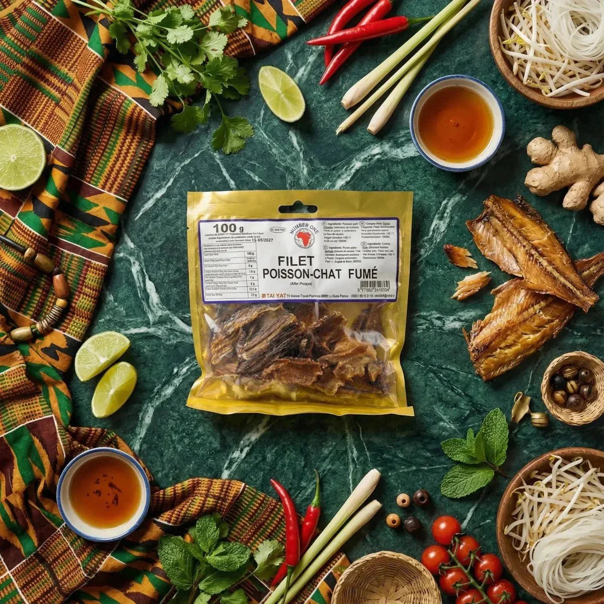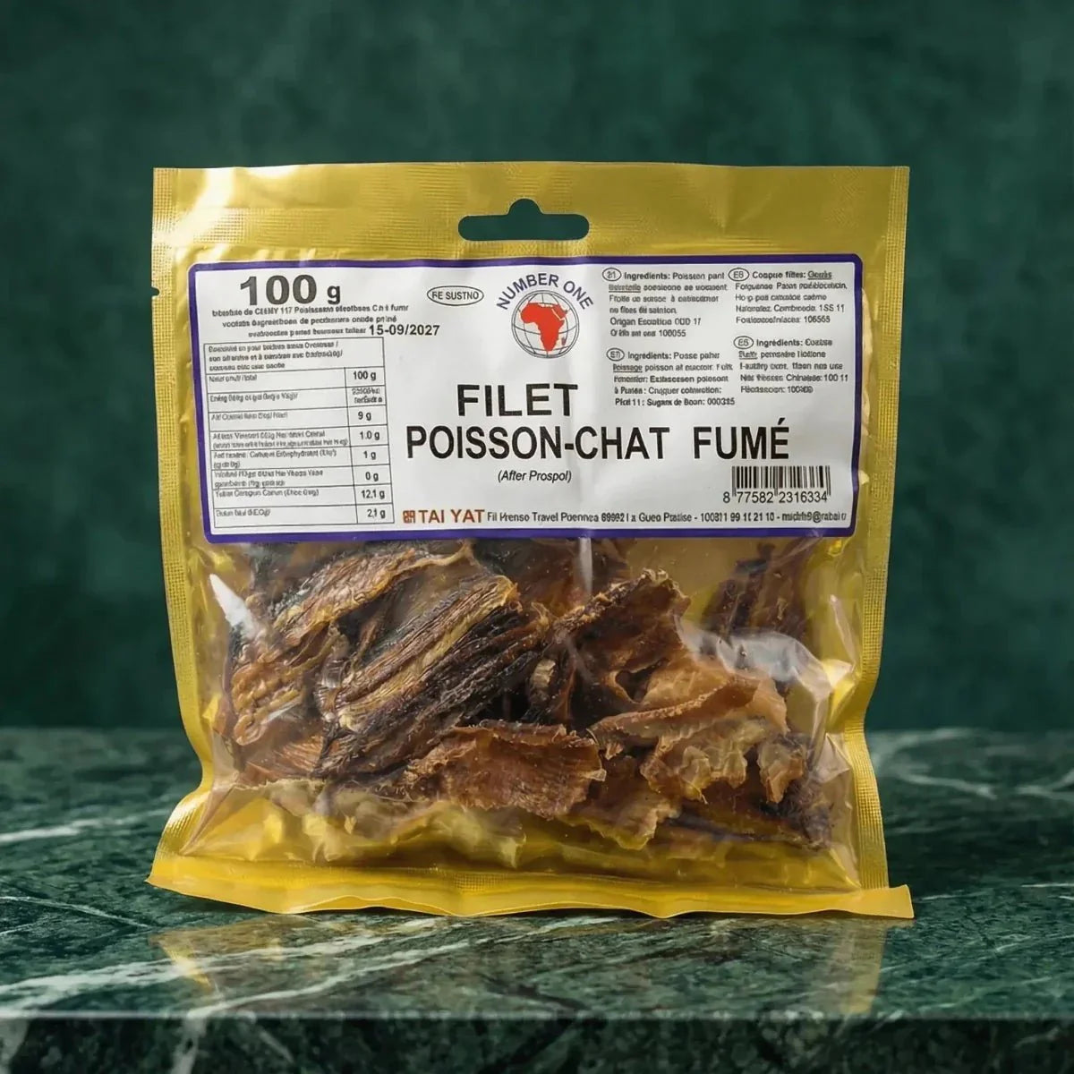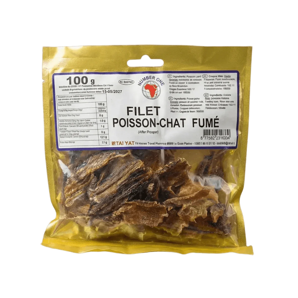 Gerookte meervalfilet NUMBER ONE — West-Afrikaanse vis — 100g — een authentiek product geselecteerd door NKOSI vanwege de uitzonderlijke kwaliteit. Formaat 100g.