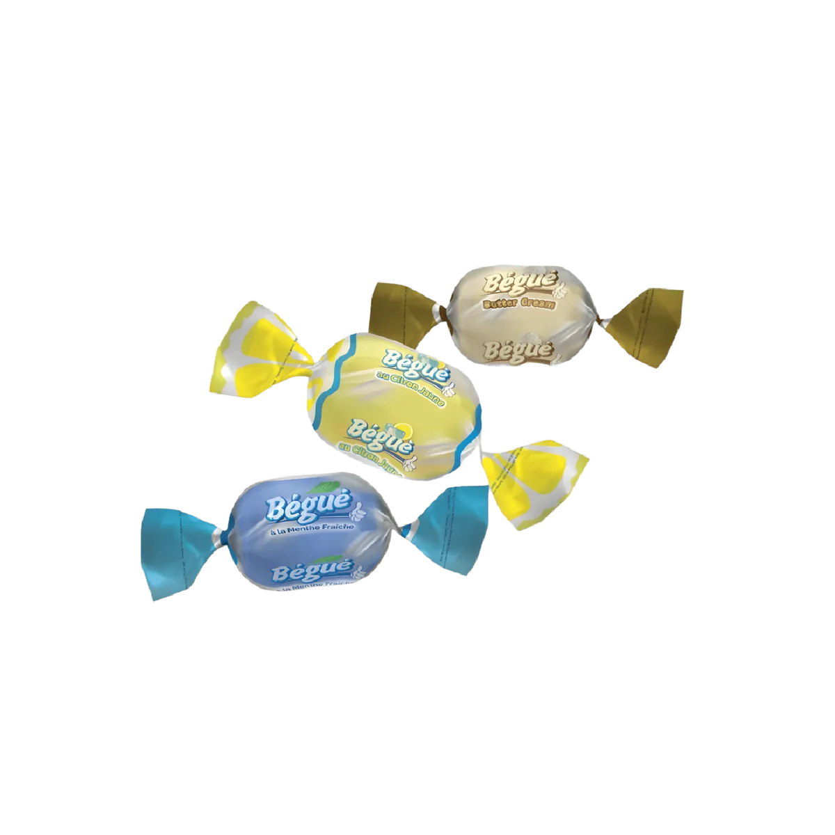 Les bonbons BÉGUÉ sont des délices sucrés au gingembre, ananas et menthe, offrant un goût prononcé et une saveur unique. Ces bonbons sont parfaits pour ceux qui aiment les saveurs originales.