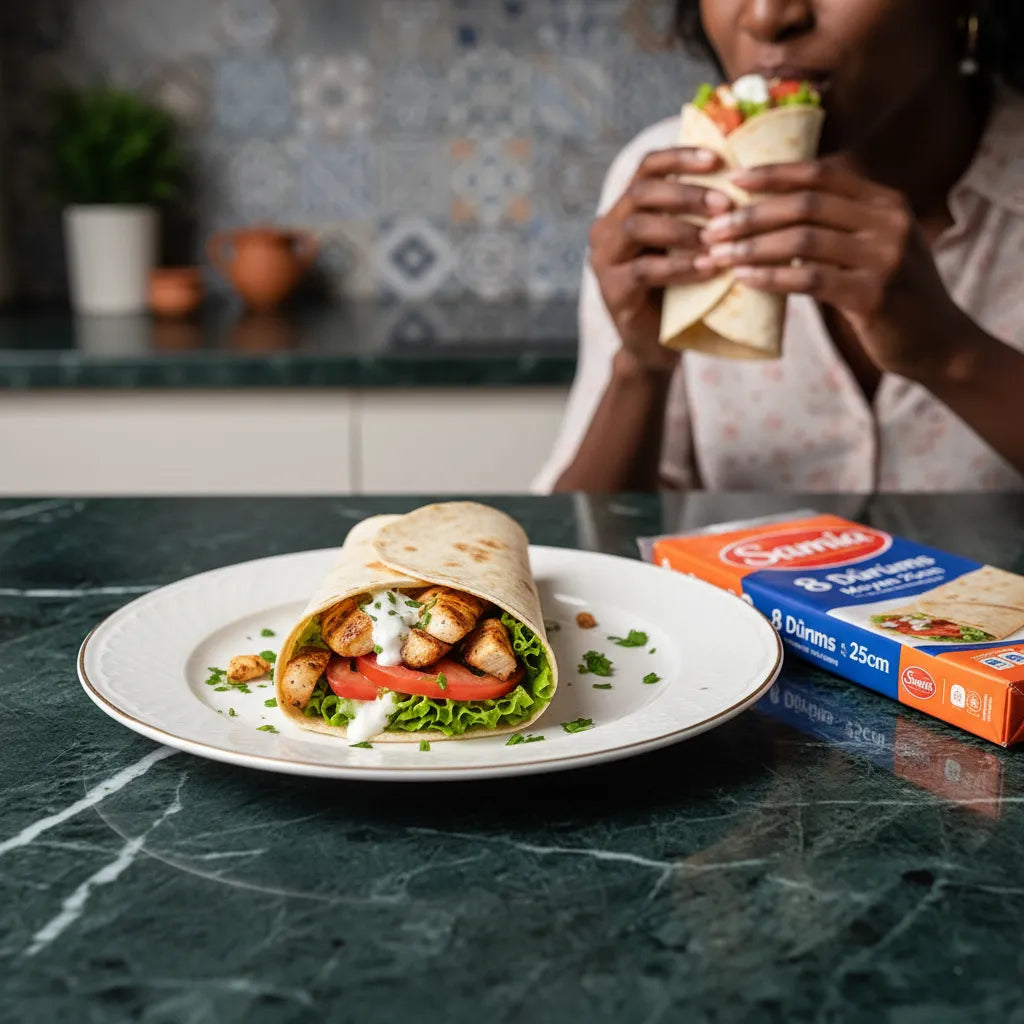 Le Dürüm est plus épais et élastique, idéal pour envelopper des garnitures plus denses, tandis que la tortilla est fine et souvent utilisée pour les plats mexicains.