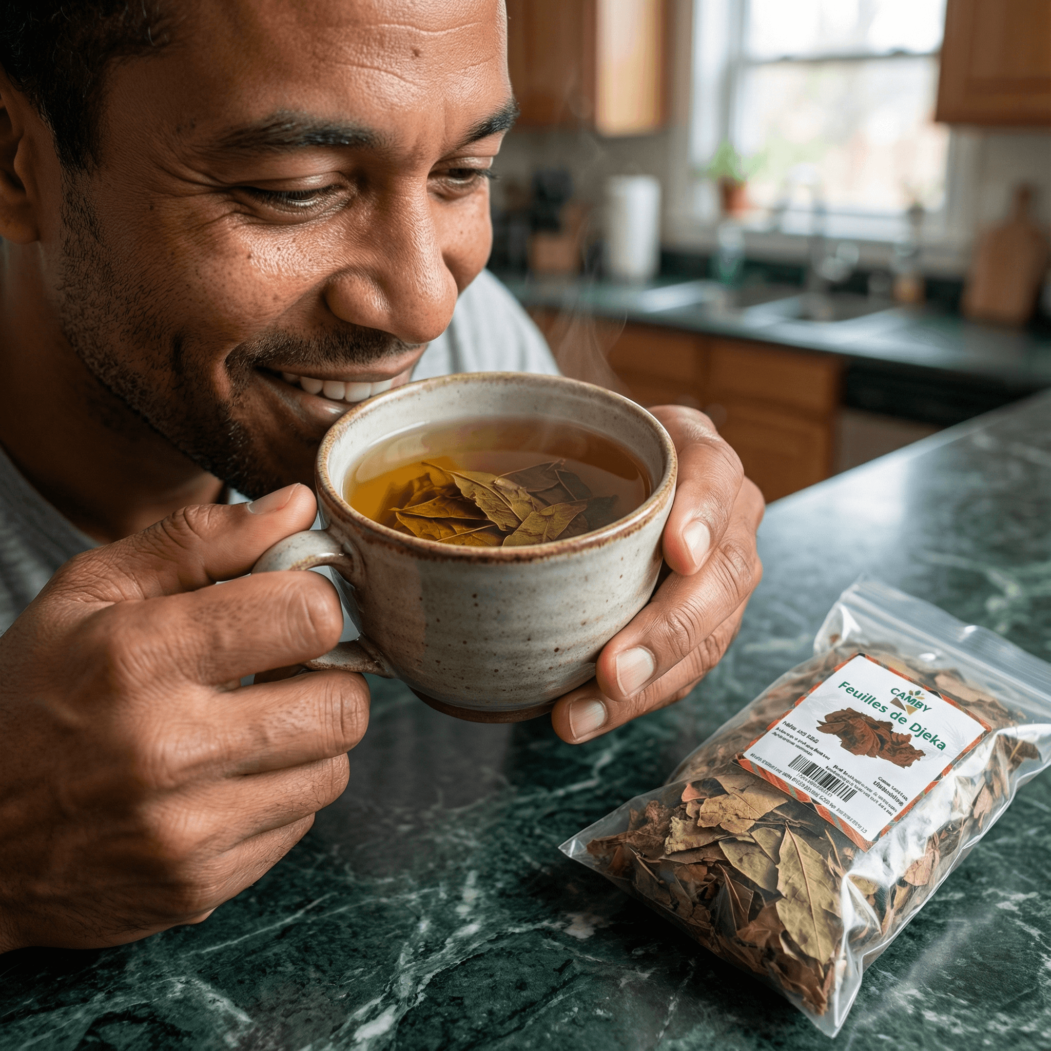 Pour une infusion parfaite, faites bouillir quelques feuilles de Djeka dans environ un litre d'eau pendant 10 à 15 minutes. Laissez ensuite infuser hors du feu pendant quelques minutes avant de filtrer. Vous pouvez consommer cette décoction chaude ou tiède, selon vos préférences. Un rituel simple pour un maximum de bienfaits.