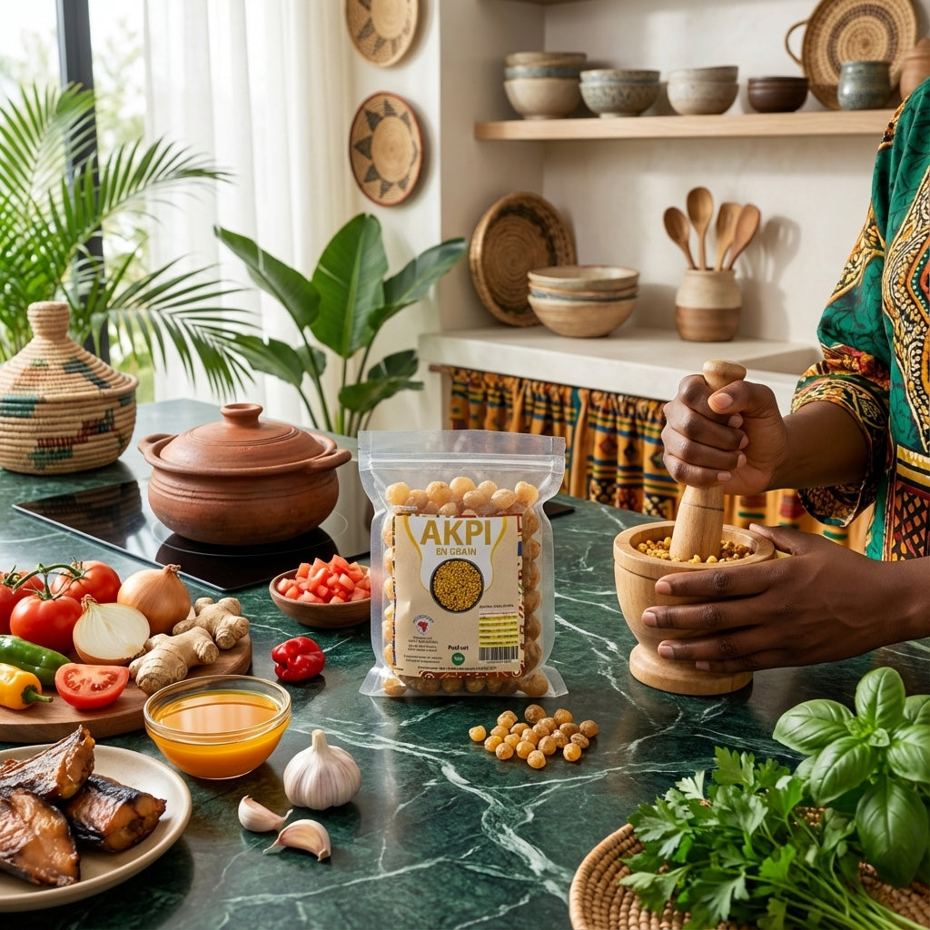 Reconhecido pelos grandes chefs africanos pela sua qualidade excecional, o nosso Akpi moído é cuidadosamente embalado para preservar toda a sua frescura e aromas.