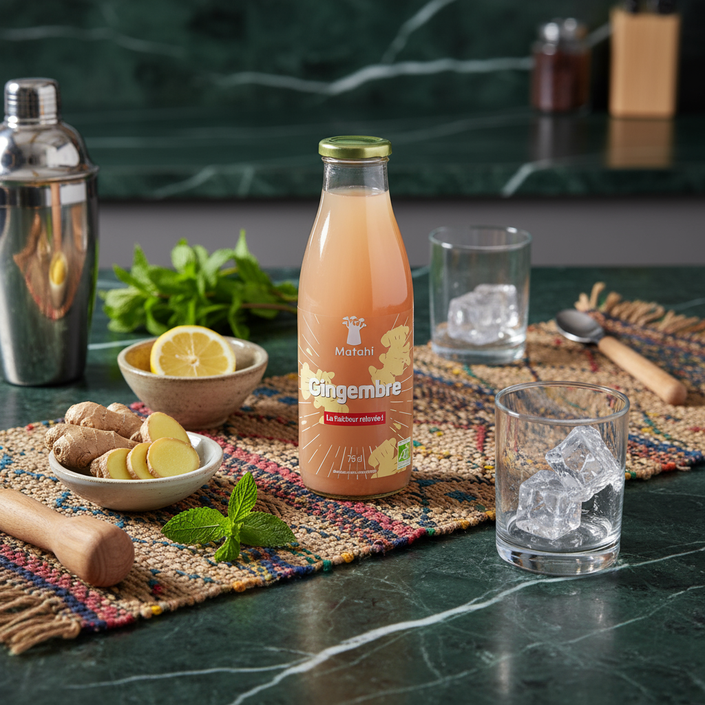 Esta bebida de gengibre caracteriza-se pelo seu sabor intenso e equilibrado. O gengibre acrescenta um toque picante e ligeiramente picante, enquanto os outros ingredientes naturais suavizam o efeito geral, criando um paladar harmonioso. A sua textura é suave e a sua cor dourada evoca a riqueza dos seus ingredientes.
