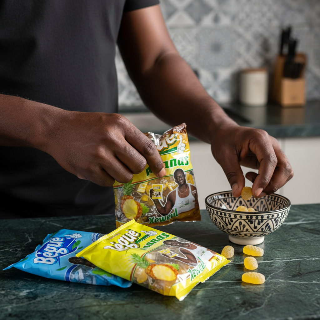 Os doces BÉGUÉ são delícias doces com ruivo, ananás e menta, oferecendo um sabor marcante e único. Estes doces são perfeitos para quem gosta de sabores originais.