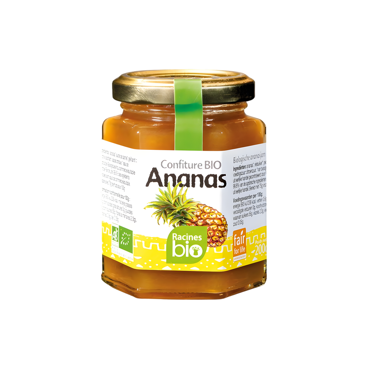 A geleia de ananás RACINES BIO oferece uma experiência de sabor autêntica, realçando a doçura natural do ananás. Preparada com frutas cuidadosamente selecionadas, esta geleia apresenta um sabor rico e uma textura cremosa, sendo ideal para o pequeno-almoço ou lanches.
