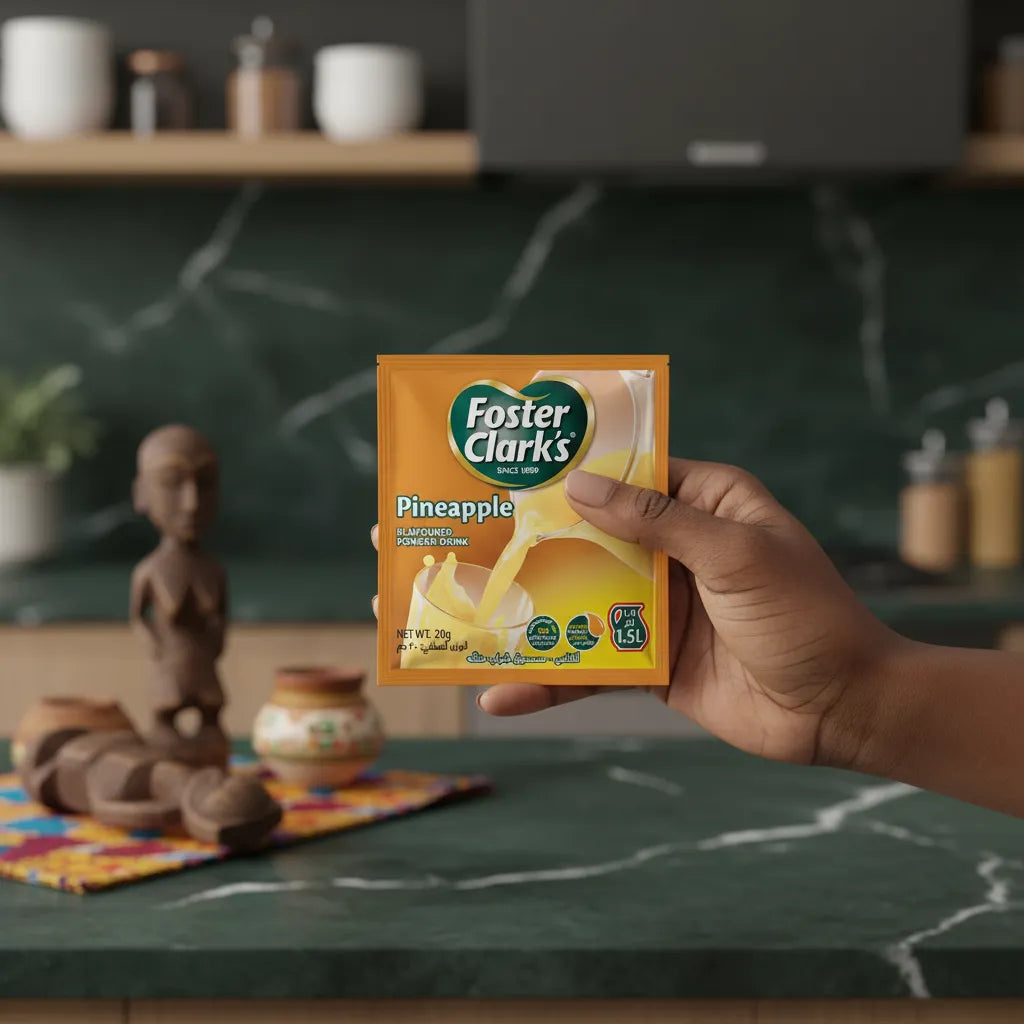 O Sumo de Ananás em Pó Foster Clarks é uma forma prática e deliciosa de desfrutar de uma bebida refrescante com um sabor exótico a ananás. Apresentado em pó, este produto é ideal para preparar bebidas de forma rápida e fácil, além de oferecer uma validade longa. É embalado num recipiente hermético que preserva o seu aroma e frescura até à sua utilização.