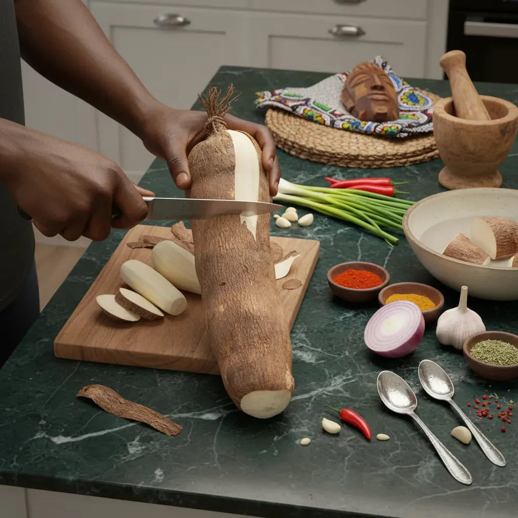 O inhame é um tubérculo rico em nutrientes, apreciado pela sua textura cremosa e sabor delicado. Este vegetal de raiz é uma excelente fonte de hidratos de carbono complexos, fibras alimentares e vitaminas, incluindo vitamina C e algumas vitaminas do complexo B. O inhame destaca-se pela sua versatilidade na culinária, pois pode ser preparado de diversas formas, como esmagado, frito, cozido e assado.