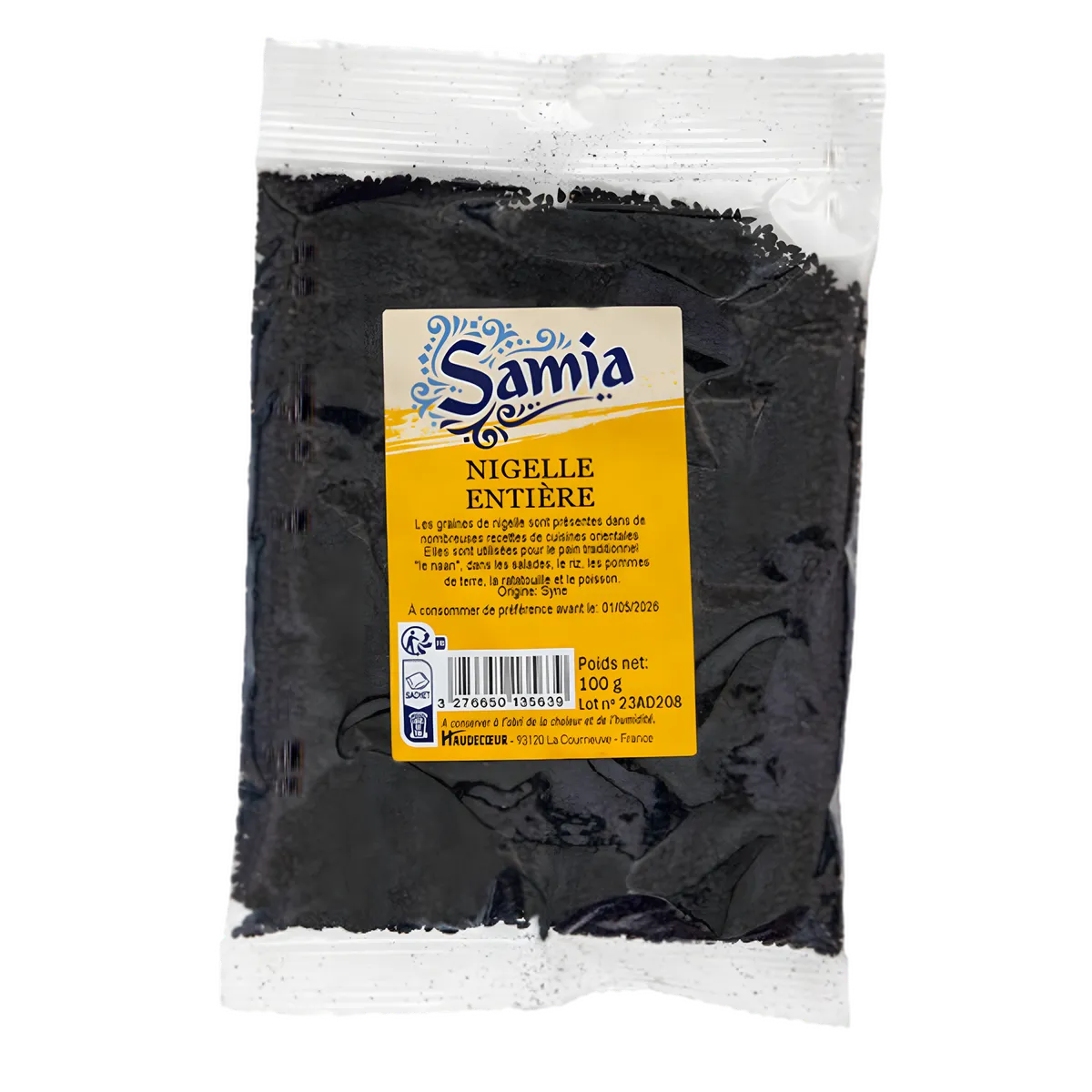 Les graines de nigelle entières SAMIA vous transportent dans un univers culinaire riche en saveurs et en couleurs. Cultivées avec soin, ces graines conjuguent un goût légèrement poivré et un arôme unique qui séduiront vos papilles. Découvrez l'histoire culinaire de ce trésor, utilisé depuis des millénaires aussi bien dans les mets sucrés que salés.